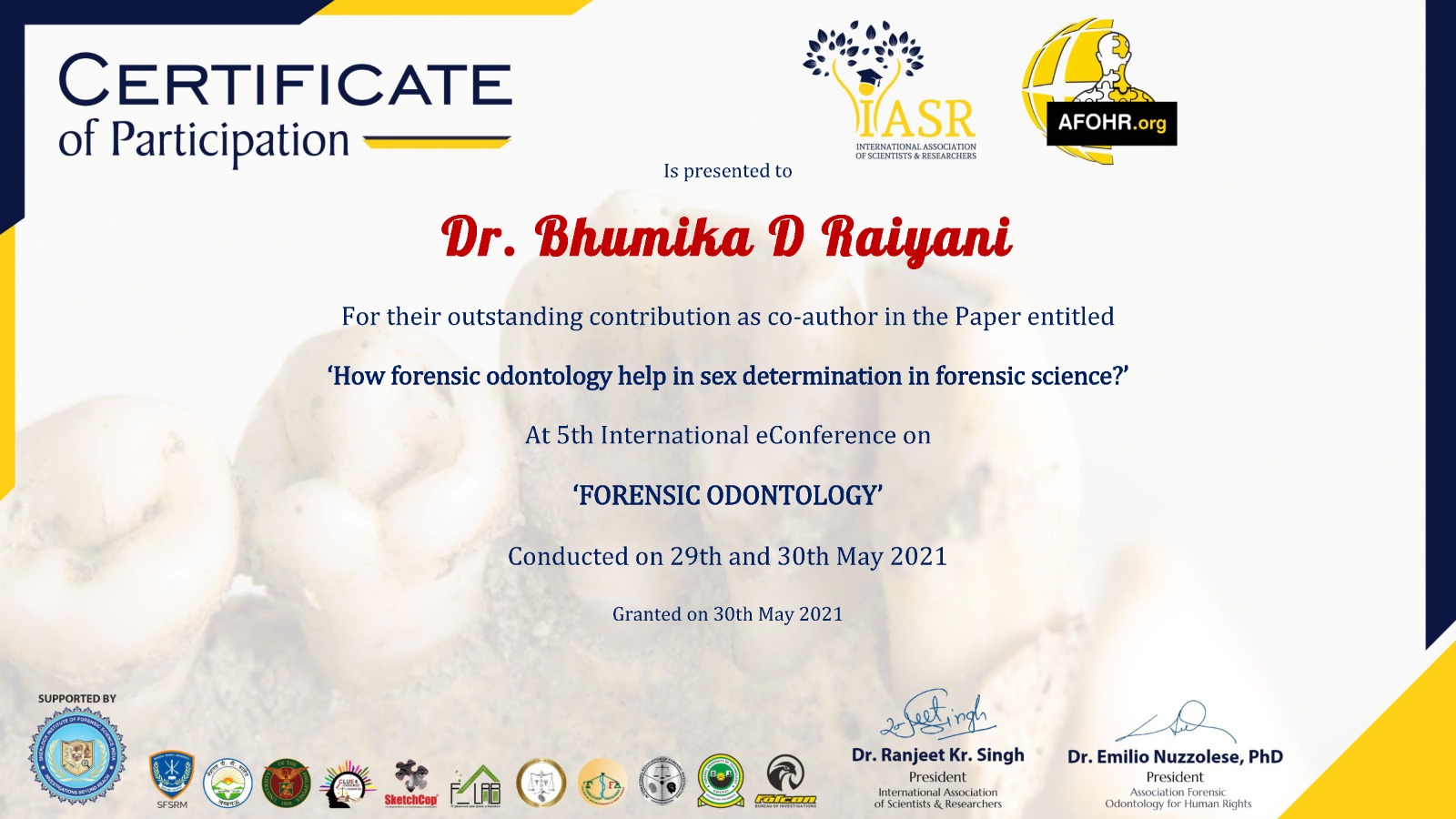 Faculty of Dental Sciences, Dharmsinh Desai University (2018-2021)